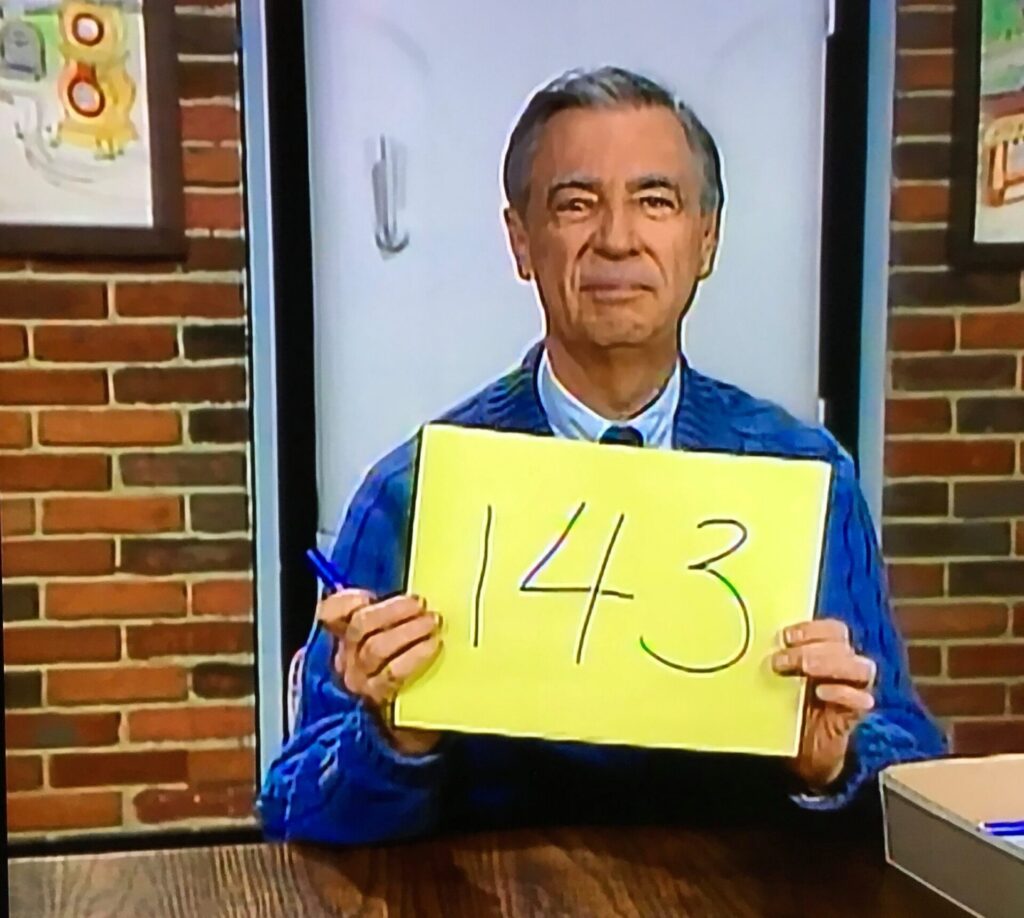 Rogers used 1-4-3 as another way of saying “I love you” with the numbers representing the number of letters in each word.