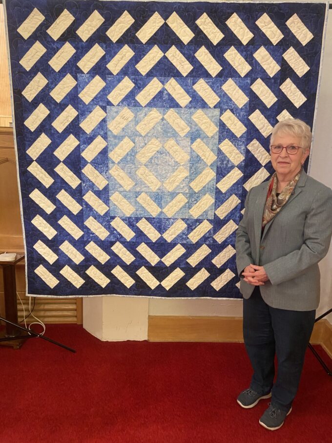 Carolyn Wolff is shown with Centennial, the signature quilt created during the 100-year anniversary celebration of Waynesboro Church of the Brethren. Former pastors,...