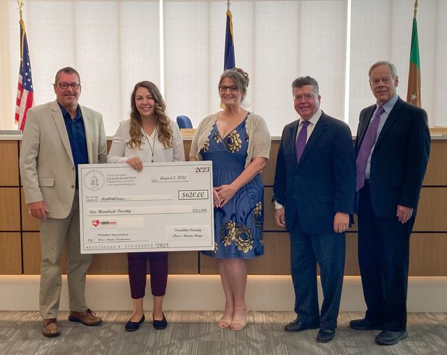 CHAMBERSBURG– Franklin County employees raised $620 for Rabbitcares through the county’s monthly “dress down” fundraiser in July. The fundraiser, which was held in...