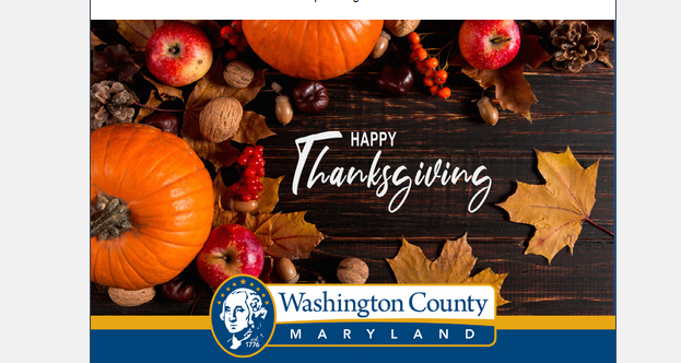 HAGERSTOWN, MD – In observance of Thanksgiving, Washington County Government offices will be closed beginning at 1 p.m. on Wednesday, Nov. 22, and...