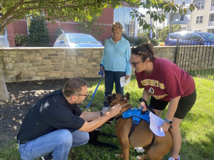 WAYNESBORO – The Rev. Drahus Oslik, associate pastor of Evangelical Lutheran Church, blesses Sadie, as owner Sue Mason looks on, at the Blessing...