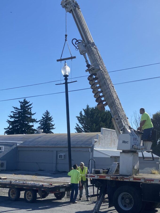 WAYNESBORO – Workers from G.W. Electric Co. Inc., Greencastle, are installing11 new Victorian-style street lights on both sides of Walnut Street between Second and...