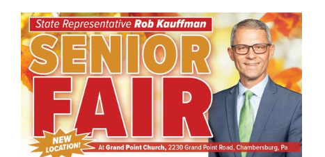 CHAMBERSBURG – The 2025 Senior Fair, hosted by state Rep. Rob Kauffman (R-Franklin) is coming up at a new location. The fair is scheduled from 9 a.m. to noon on Friday, Sept. 12, at Grand Point Church, 2230 Grand Point Road.