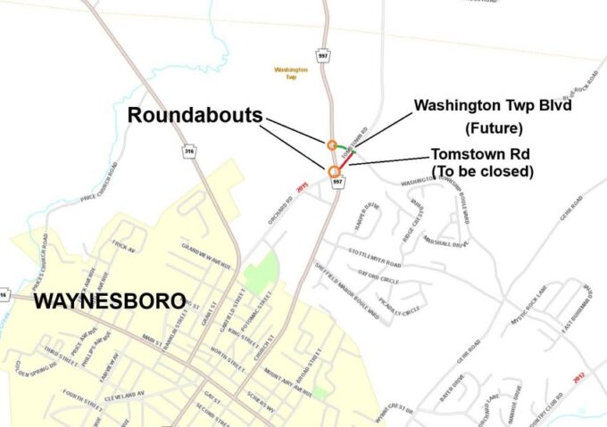 WAYNESBORO – Weather permitting, construction will start on Monday, March 3, on two roundabout projects in Washington Township on Route 997, both done...