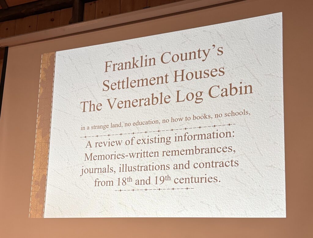 Using information and photographic evidence he has collected in his 37-year career investigating and constructing log homes, Reed shared with the audience not just a history of some of the homes that still stand in Franklin County, but also the different techniques used in constructing them, such as dovetailing and notching.