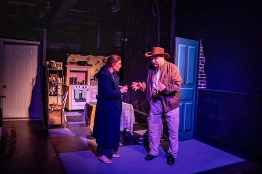 Sheriff Buck (Richard Dobson) may sense something is off, but Annie (Diana Arbrecht) is giving nothing away. Photo Credit: Love & Admire Photography