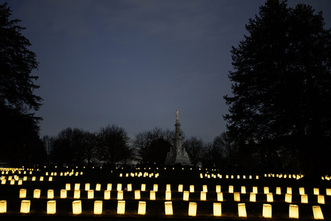 GETTYSBURG— Thousands of luminaries flickered across the graves of Civil War soldiers Saturday night, drawing a crowd of more than 500 to Gettysburg...