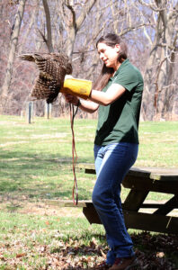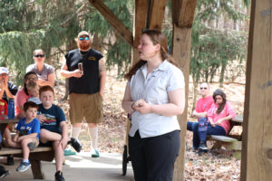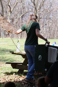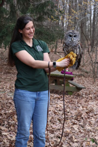 WAYNESBORO – Families gathered at Buttonwood Nature Center on Saturday, March 29, to meet Strix, a barred owl ambassador from Strawberry Hill Nature Preserve, during a special program in the Naturalist Discovery Series.