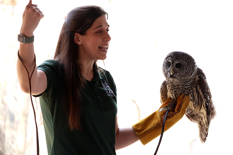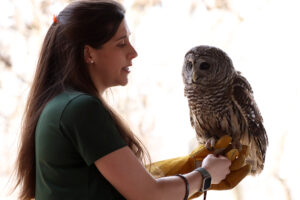 “Barred owls like Strix can live 25 to 30 years in captivity but only 10 to 15 years in the wild,” Gageby said. She noted that Strix weighs about 1.5 pounds and eats two to three mice daily.