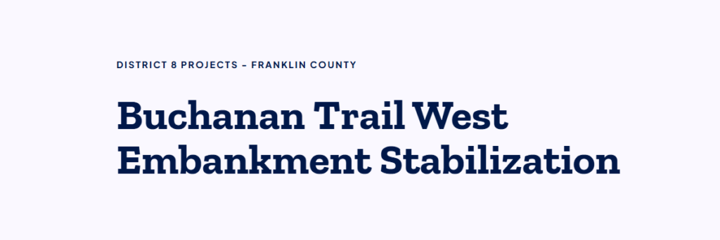 The Pennsylvania Department of Transportation (PennDOT) invites the public to an online plan display regarding an embankment stabilization project on Route 16 (Buchanan Trail West) in Peters Township, Franklin County.