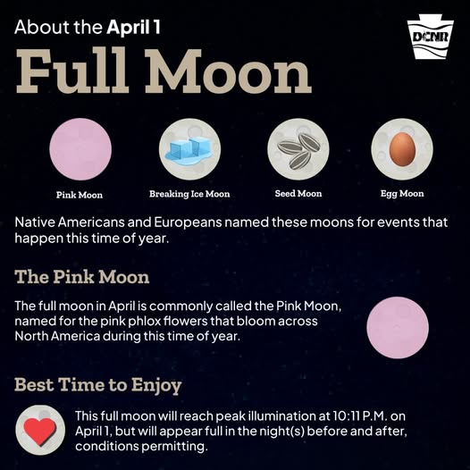 The Pink Moon will brighten the night sky Tuesday, with the full moon expected to reach peak illumination at 10:41 p.m. April 1,...
