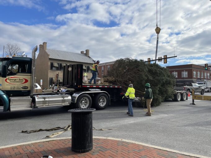 WAYNESBORO–This year’s Christmas tree arrived in downtown Waynesboro on Monday. The Norway spruce was donated by Anna Vitale and taken down by Long’s...