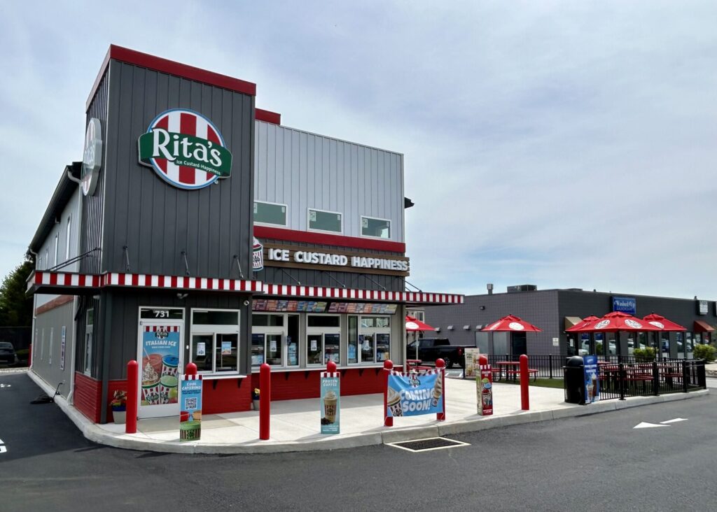 The couple worked on the project for a year and coordinated with the Rita’s parent company to modernize the façade, create a digital drive-thru, accommodate DoorDash and Uber Eats, and add a fenced patio that can accommodate 60 people.