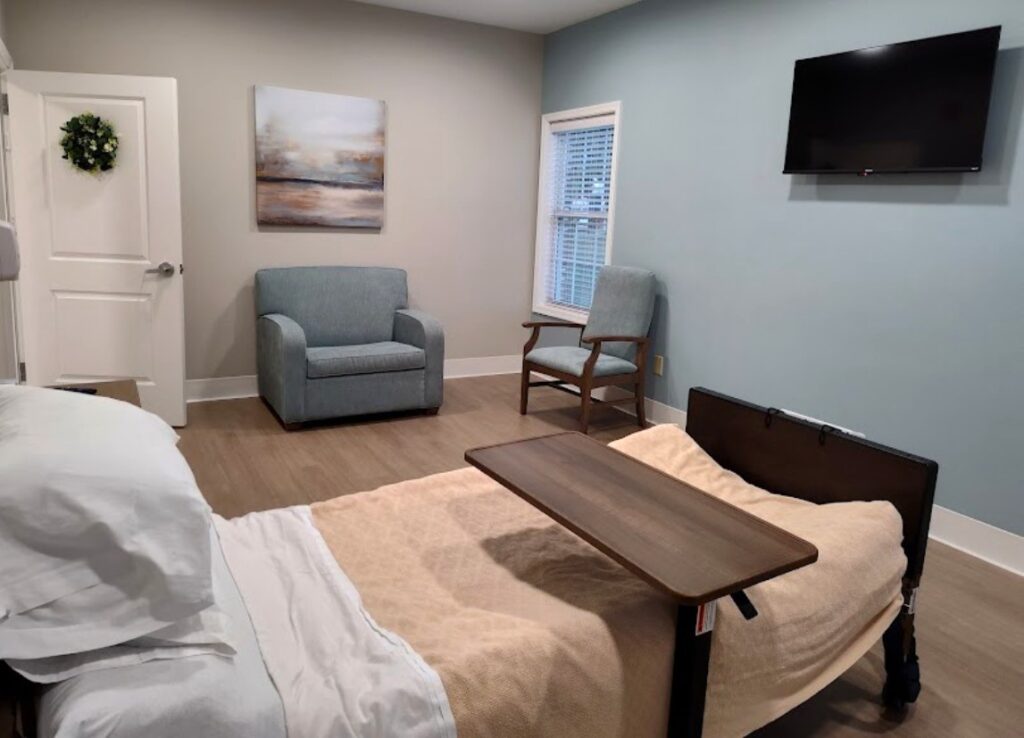 Mercy House offers 24-hour visitation/support and chairs that pull out into beds. These conditions promote a peaceful atmosphere where “family can be just family” while the staff manages the practical needs of residents who can’t be cared for in their homes.
