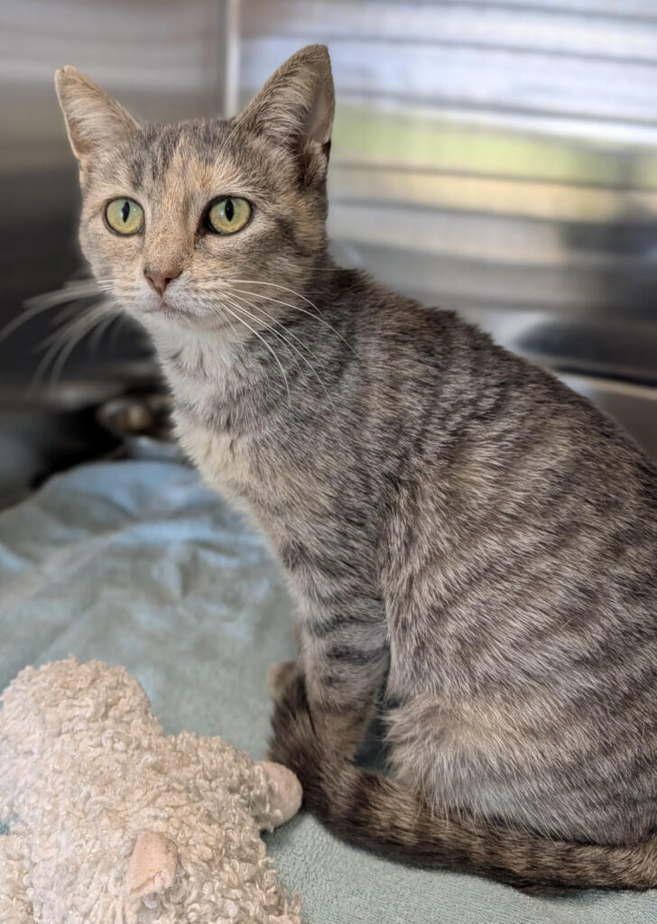 Fluttershy is a 1-year-old dilute tortie girl who came into the shelter as a stray, so we don’t know a lot about her. She is sweet, but can be a little timid at first when she meets you. Could you show Fluttershy what a forever home is all about?