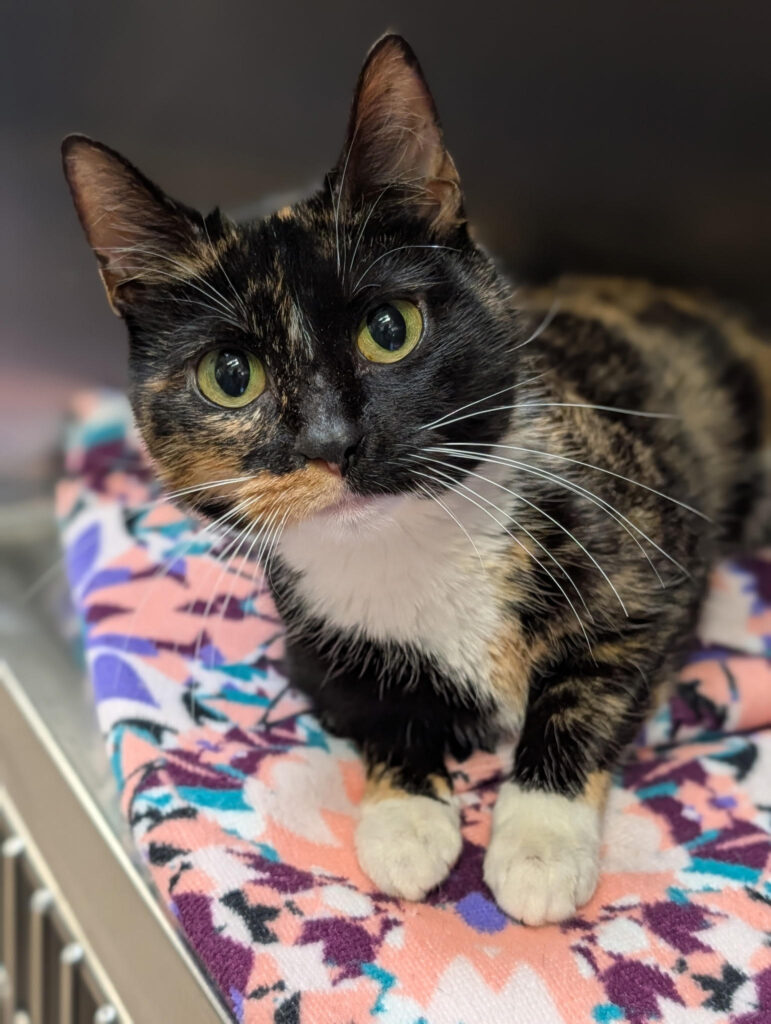 Trudy came into the shelter as a stray and she is a 1-year-old tortie girl with white. She loves to play. Could you be Trudy’s new best friend?