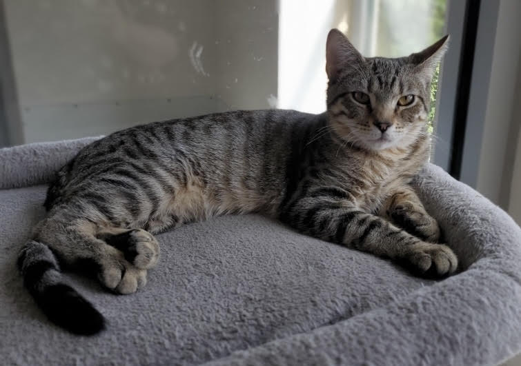 Reggie was surrendered to the shelter when his owner could no longer care for him. He is a 5-month-old brown tabby boy who is super sweet — just look at that face! Could you give him a second chance?