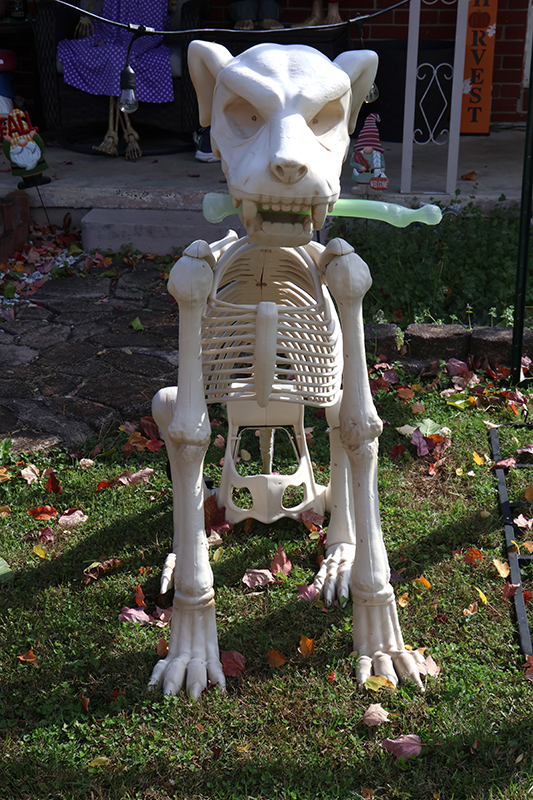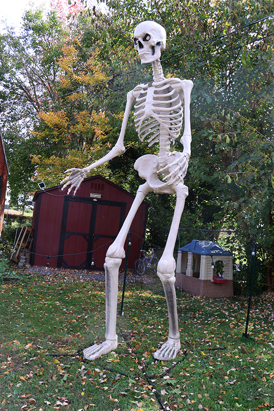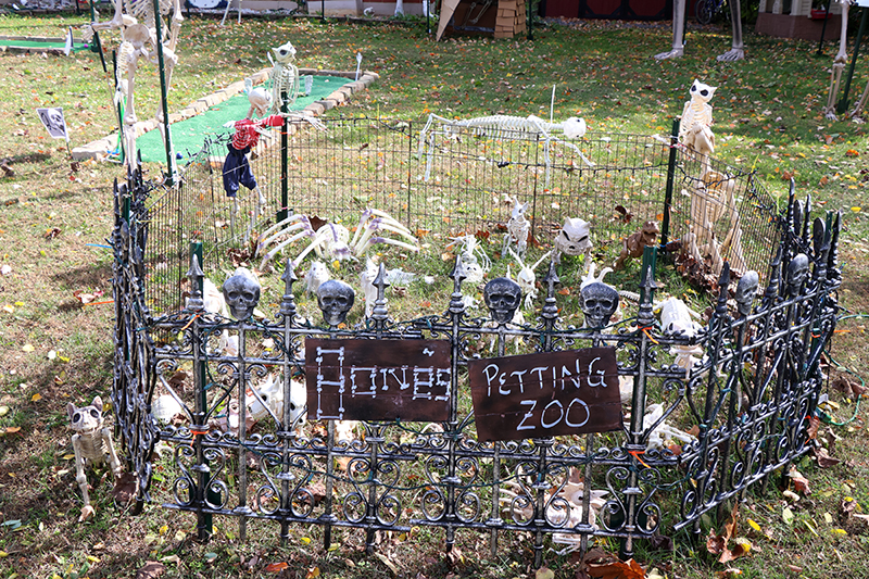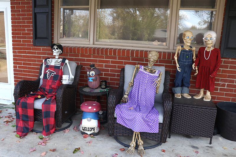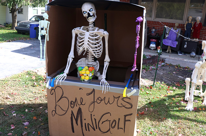 Last year, the skeletons donned their own Halloween costumes, and the Trammelles handed out awards for the neighborhood’s best-dressed trick-or-treaters. They’re repeating the costume contest this year, complete with prizes.