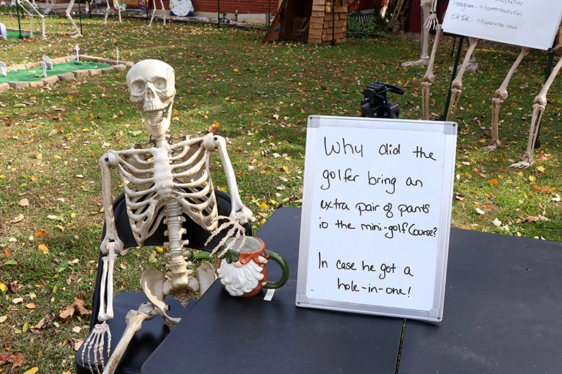 The couple kicked off their decorations around the start of the school year in September. This year, they’re featuring about 50 skeletons through October, a step up from last year’s week-long October exhibit.