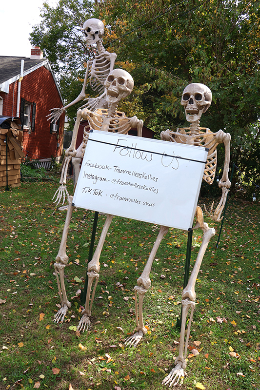 The family’s bony brigade has gone viral online. Follow the fun on Facebook at Trammellesskellies, Instagram at @trammellesskellies or TikTok at @trammelles.skelli.