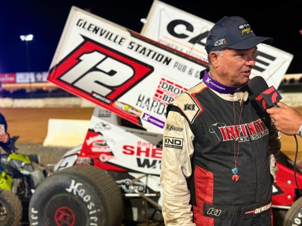 The 59-year-old Dewease showed that he was ready to compete on Saturday, when he posted the third-fastest qualifying time in the 44-car field. He drew the eighth-starting spot in his heat race, but was unfazed, moving up five spots to take third in the 10-lapper. Dewease’s luck turned around when he drew the second position to start the 25-lap feature. From there, he spent the entire race near the front of the pack chasing leader Brent Marks, and eventually settled for second place.