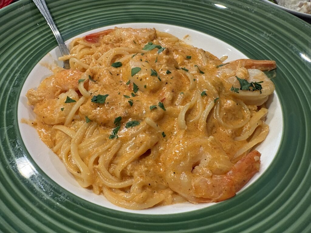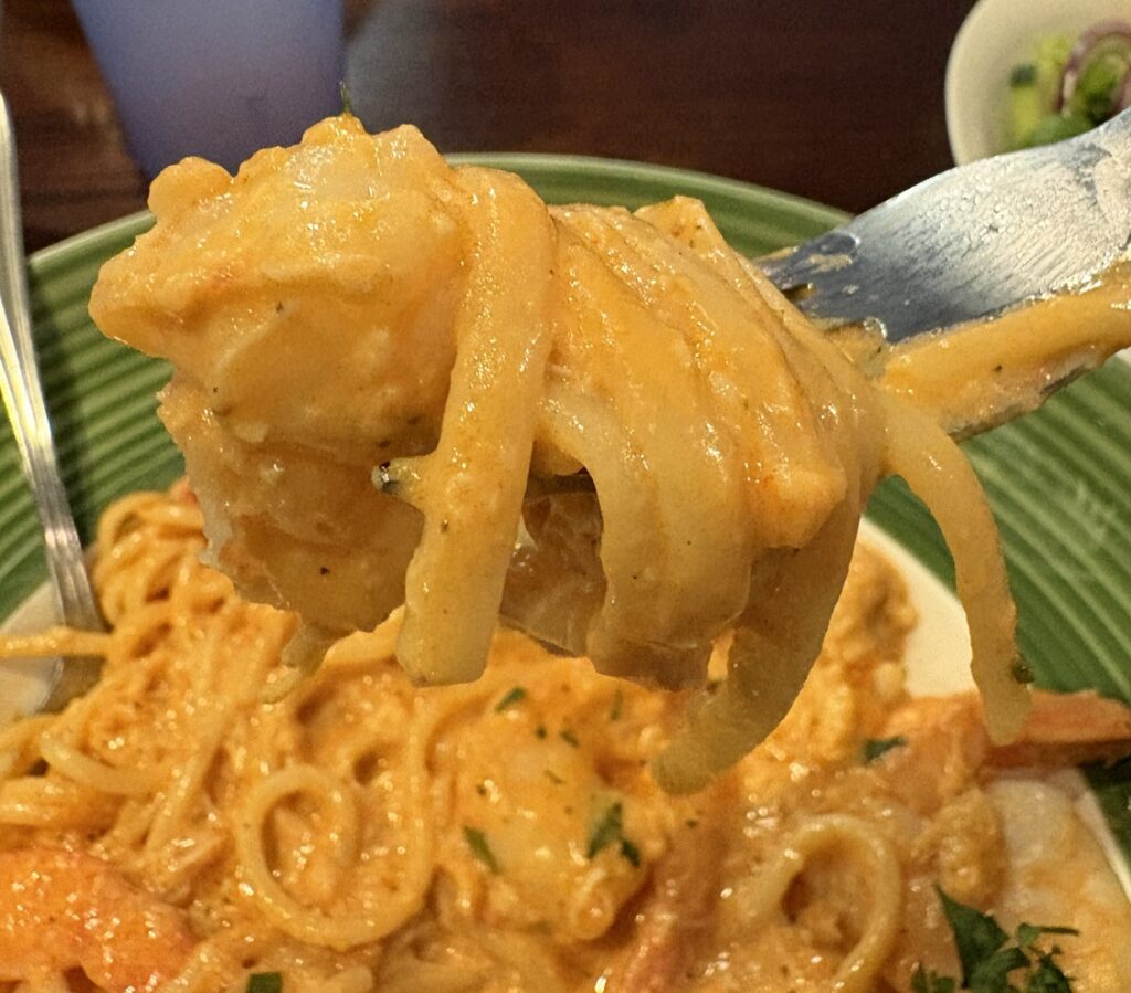 Once my dinner arrived, I knew I was in for a treat. The wonderful smell of seafood and garlic permeated from the bowl and reminded me why Italian cuisine ranks high among my favorites. The shrimp was cooked to perfection and the crab meat mixed with the cheesy sauce made each bite a flood of flavor. While fettuccine is not my normal go-to pasta, it worked great for this meal as the sauce clung to each noodle.