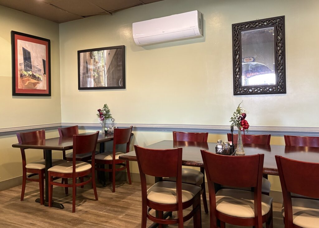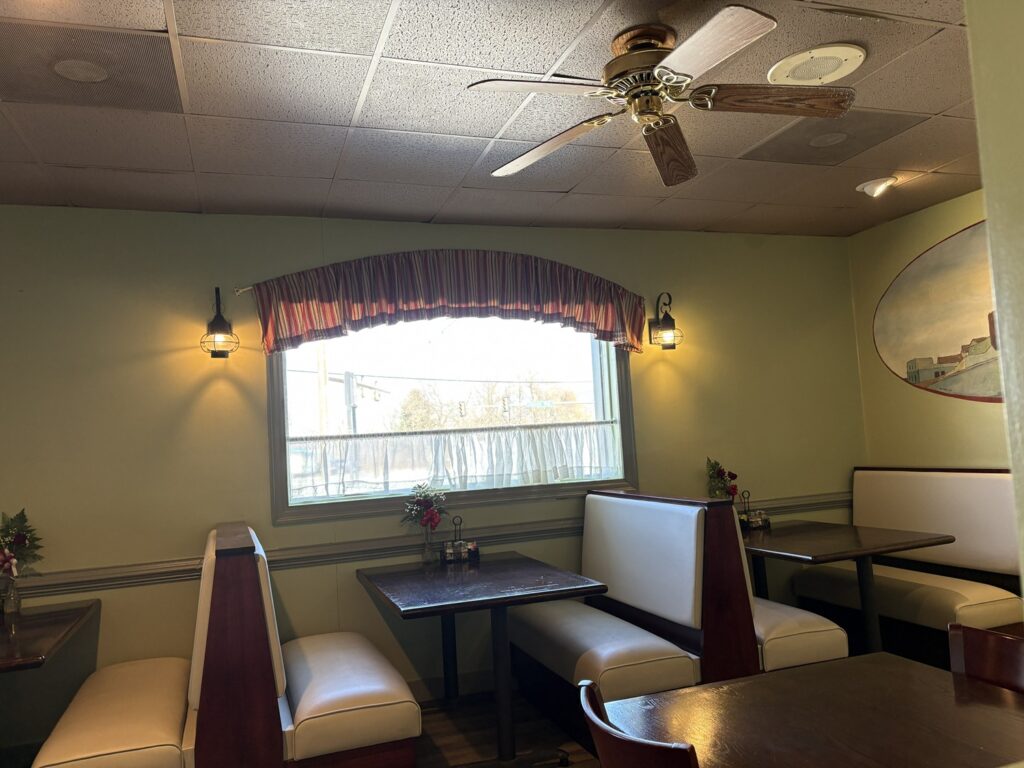 The dining area was small but inviting. There are two areas, one with tables and the other with booths that allow diners to look out at the world of Route 30. I chose to sit in the back dining area where I was welcomed with fine art depicting the comforts of Italian living.