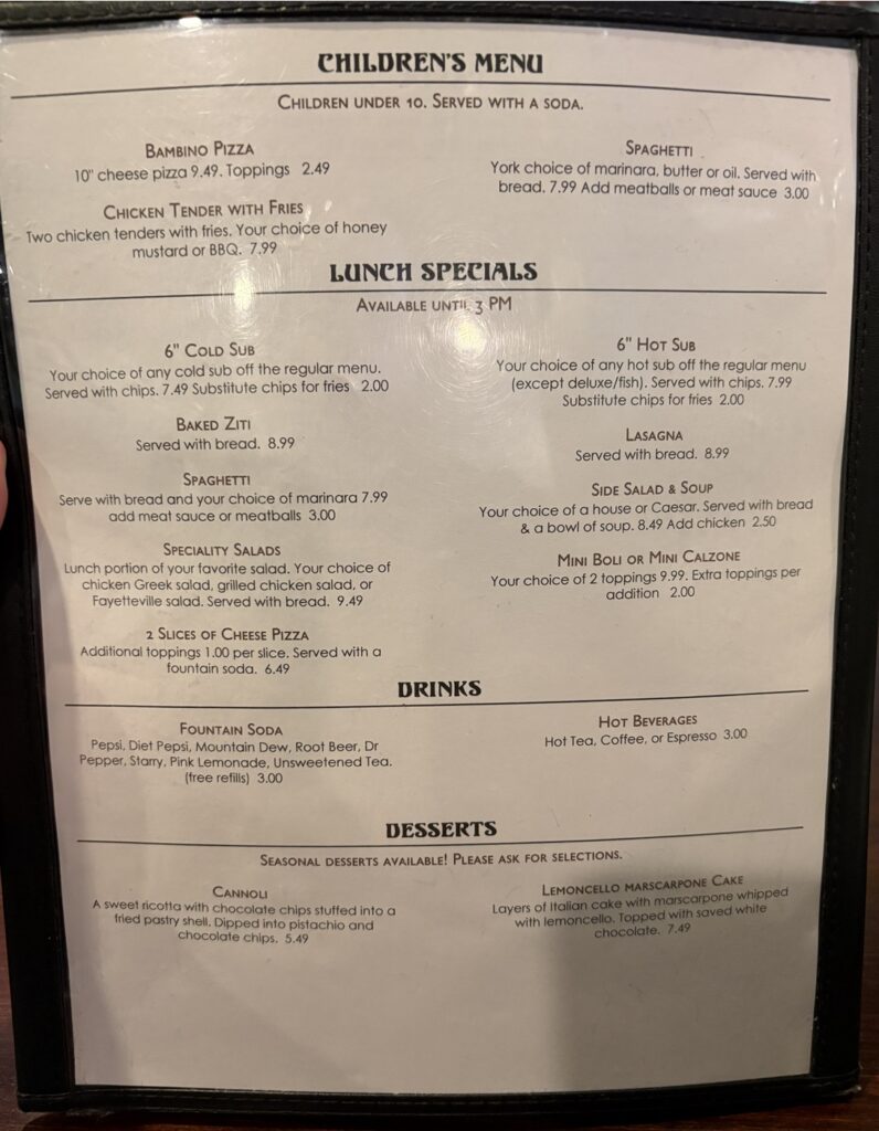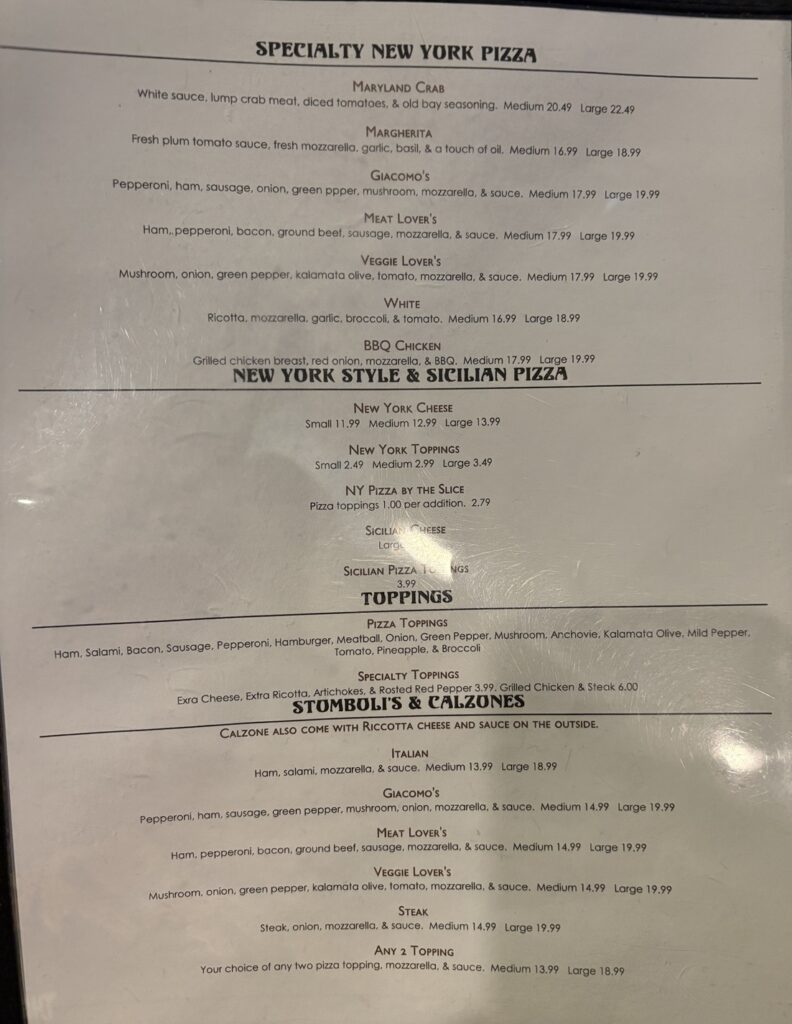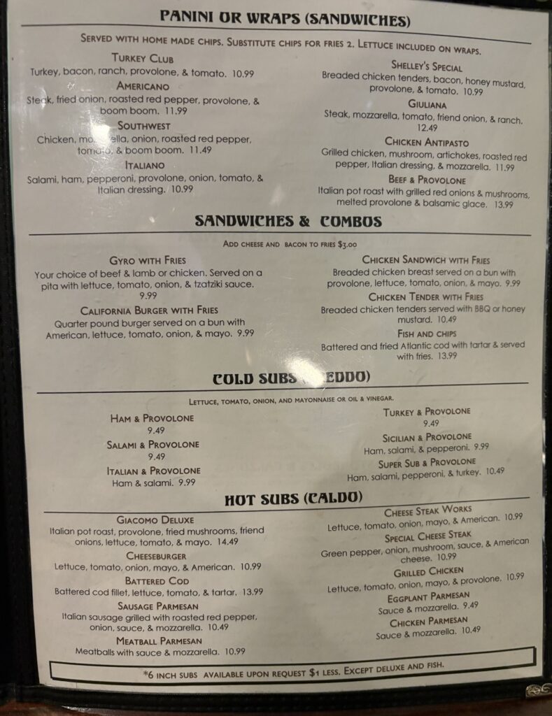 The lunch and dinner offered several options including specialty and made-to-order pizzas, stombolis and calzones, sandwiches and subs, both hot and cold, and a variety of pasta dishes such as lasagna, spaghetti and ravioli. If you are in the mood for Italian, there is no better place to visit than Giacomo’s.