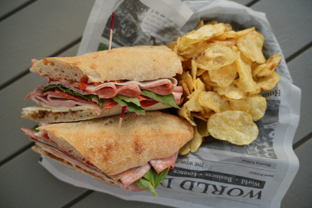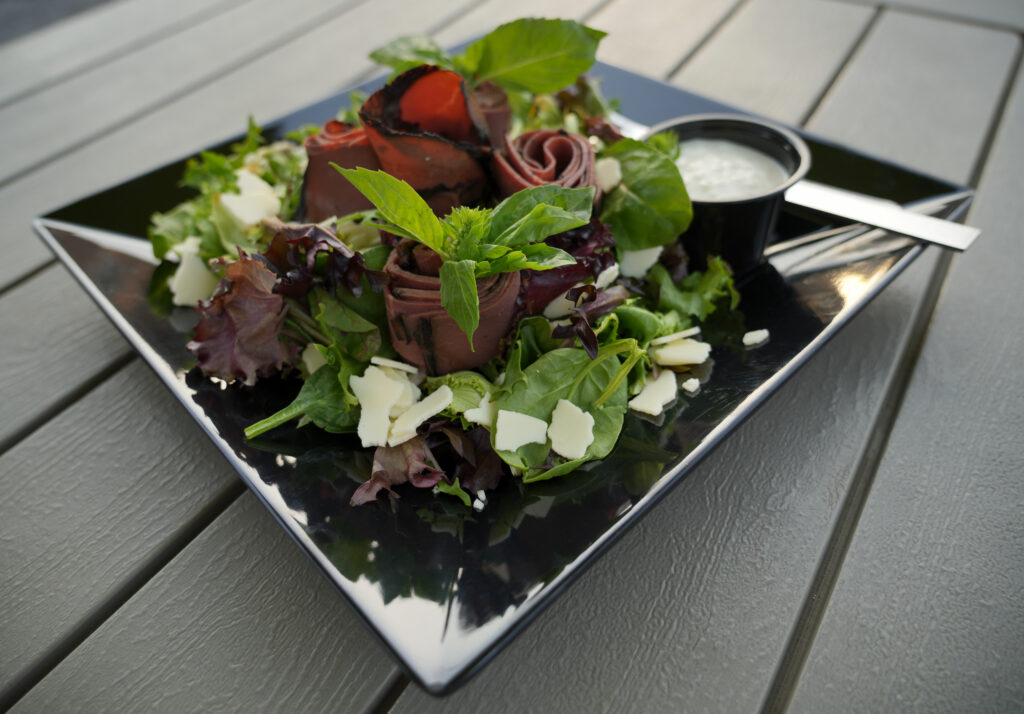 Although we were engrossed in an awesome conversation, I couldn’t help thinking about supper! I have to admit that I have been craving Rough Edges food since our last visit. The new menu offers salads, and Kate ordered the classic roast beef. I decided to celebrate an amazing evening with The Roughian, which is Wes’s favorite too, a classic New York Style Deli Italian Hoagie. The real deal. Served with a side of chips, this was all I needed. Per special request, Kate’s salad was garnished with basil and tossed with the freshest greens. Wes and Casey are grateful for Nathan’s culinary expertise, his humor and the great energy he brings. “Nathan is a perfect fit.”