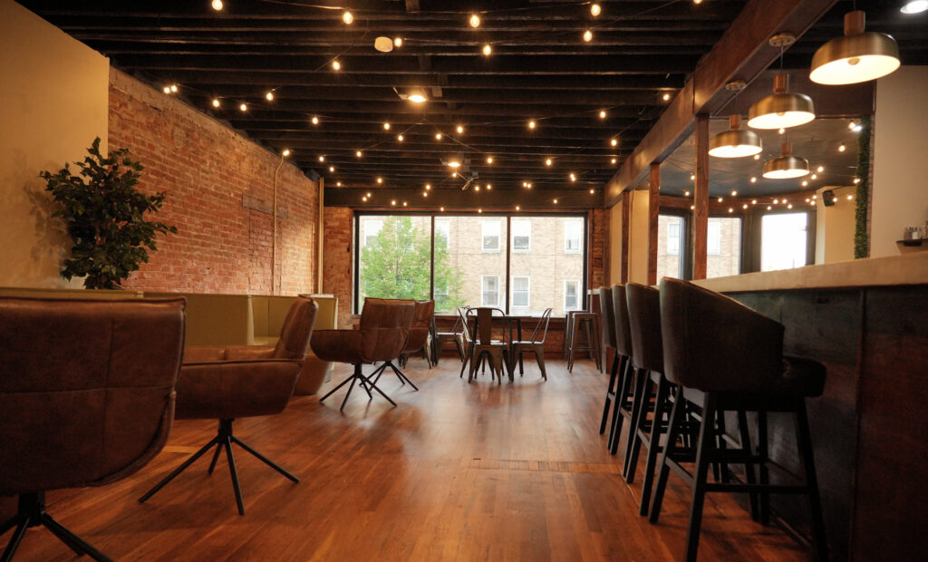 So, let’s get to it with the seating options. Rough Edges offers booths, bar stools, high top tables and outside seating on the front porch or patio. In addition, they recently opened a room on the second floor. Equipped with a bar, bathroom and catering kitchen, it’s a perfect spot to host your next private party or event. Your guests can enjoy cozy seating and a bird’s eye view of Main Street.