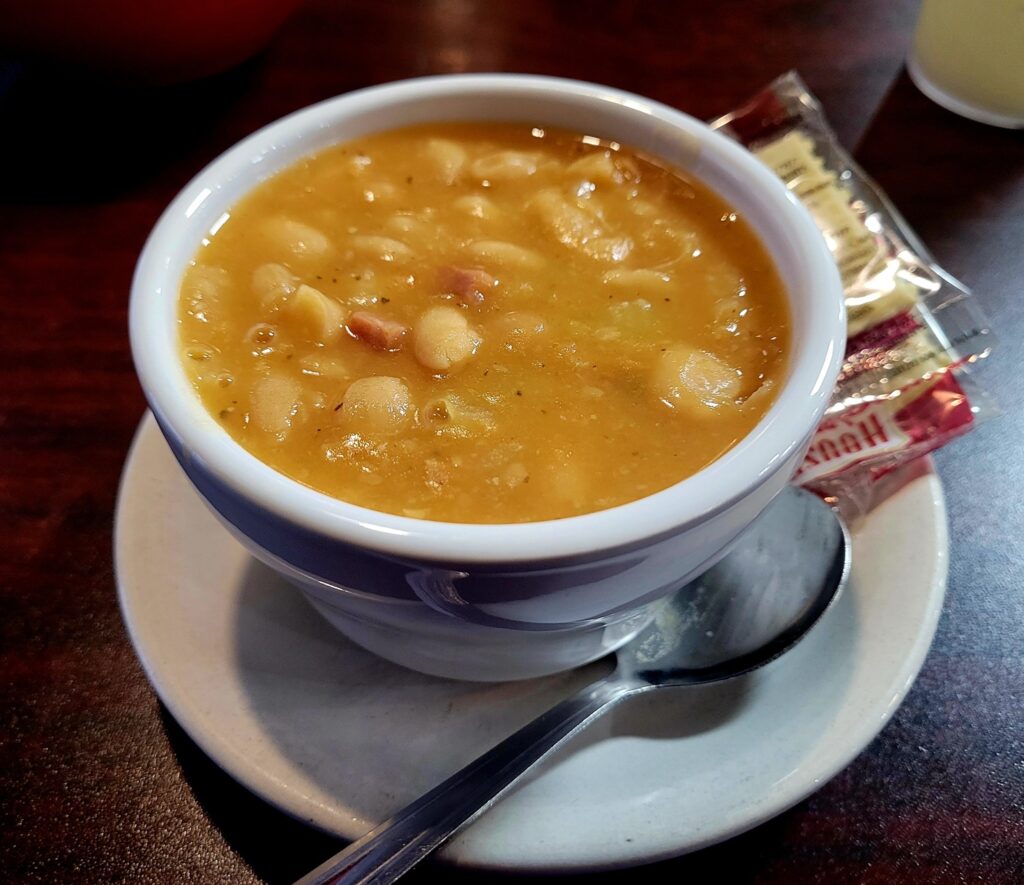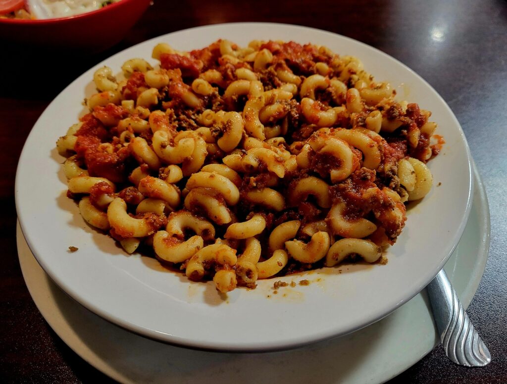Speaking of soup, I started off my meal with a selection from their soup of the day, ham and bean. It was a delight mix of white beans and ham slow cooked and served with crackers. With the helpful suggestion of my wonderful waitress, Danielle, I decided to try one of the day’s specials, Hamburger and Macaroni. The special came with a choice of side, which I chose applesauce, and a house salad. I am glad I listened to Danielle, the hamburger and macaroni was amazing. Very simple ingredients, ground beef, elbow macaroni, but the magic was in the marinara sauce.