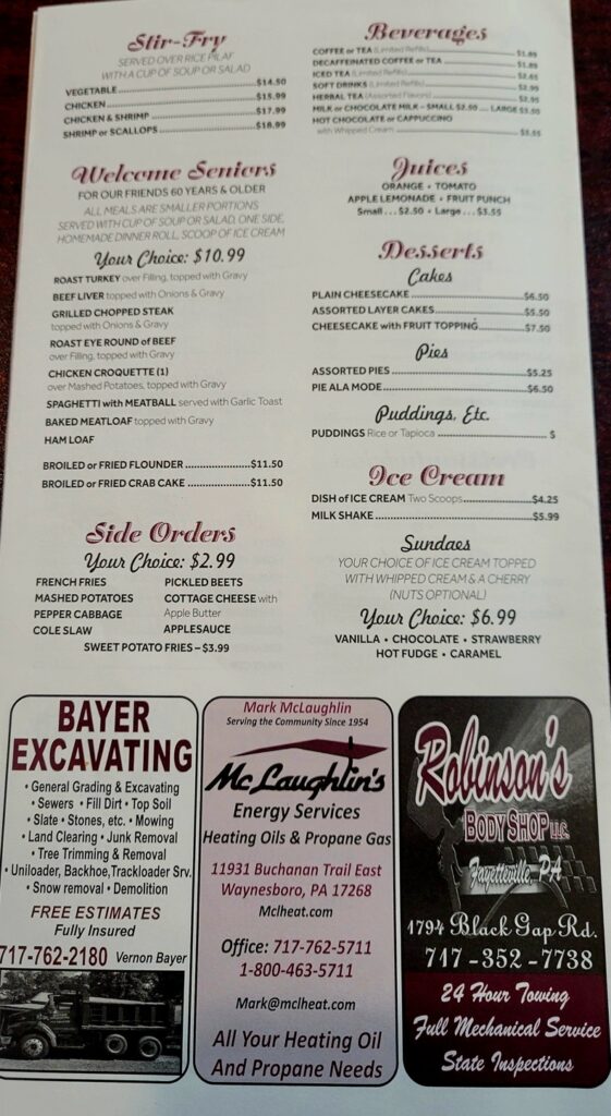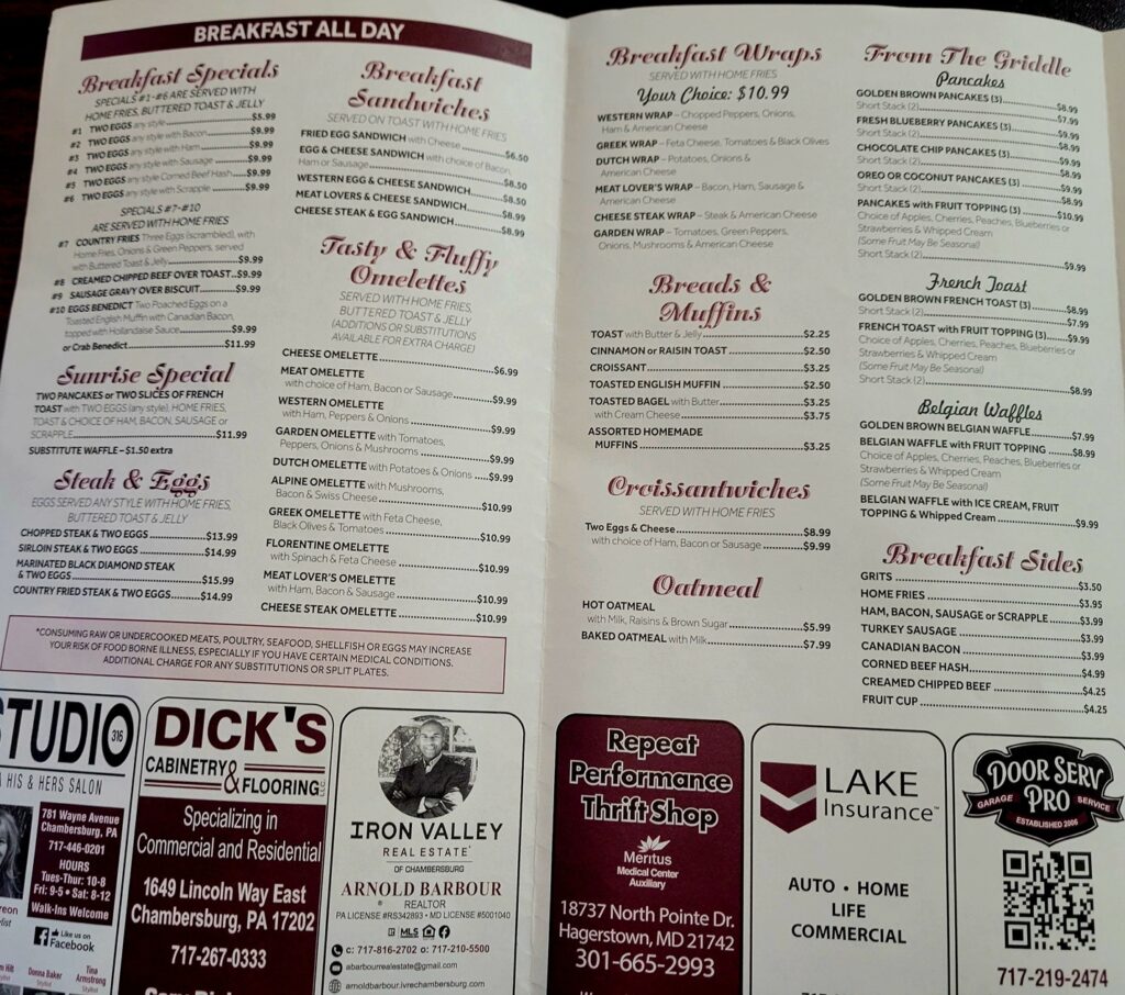 “We have worked hard to build a good relationship with our friends in Chambersburg,” he explained to me with great pride. That is how he referred to the diner’s visitors; as friends, not just customers.