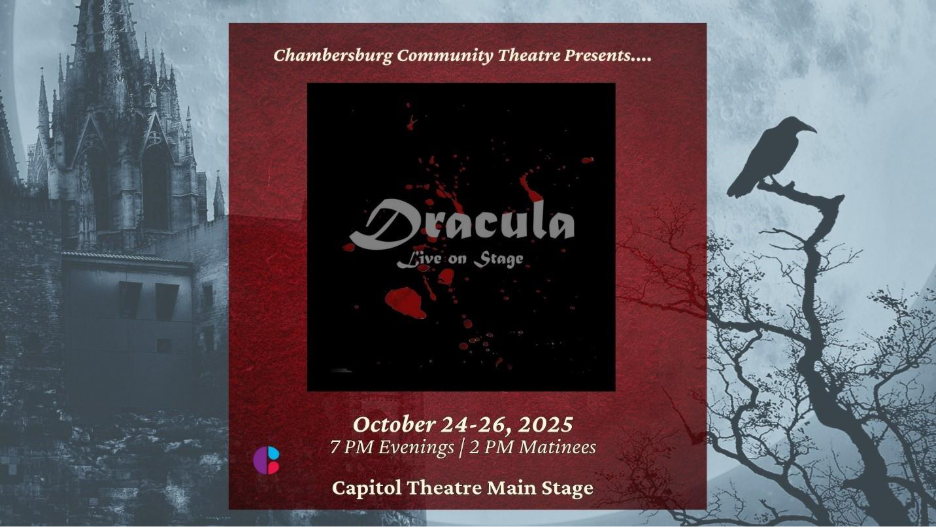 “Dracula” will be playing at the Capitol Theatre from Oct. 24–26 on Friday at 7 p.m., a double showing on Saturday at 2 p.m. and 7 p.m., and then a final showing on Sunday at 2 p.m.. The Capitol Theatre is located at 159 S. Main St. #3, Chambersburg.
