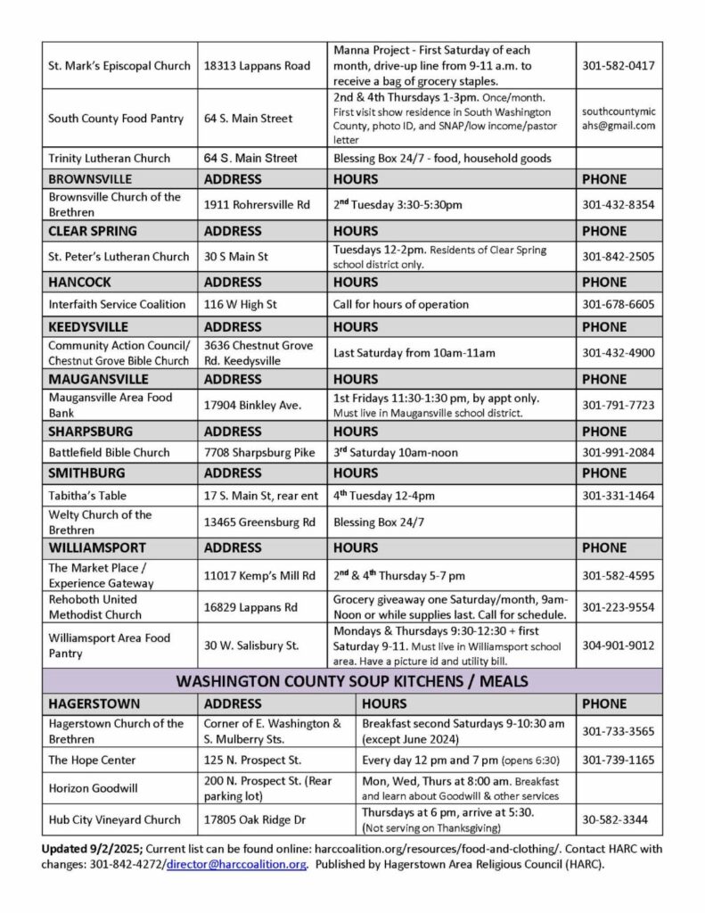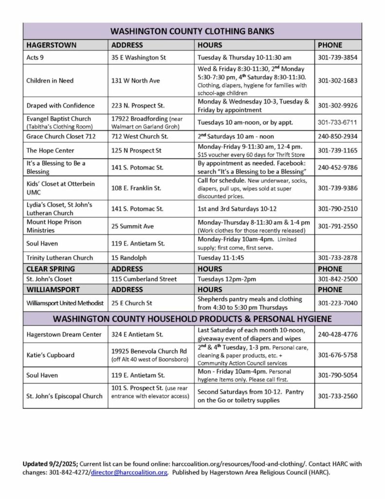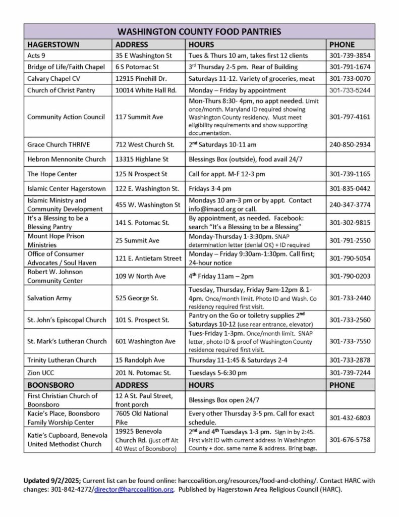 For urgent assistance or questions, please contact the Washington County Community Action Council at 301-797-4161 or refer to the full list of local resources above.