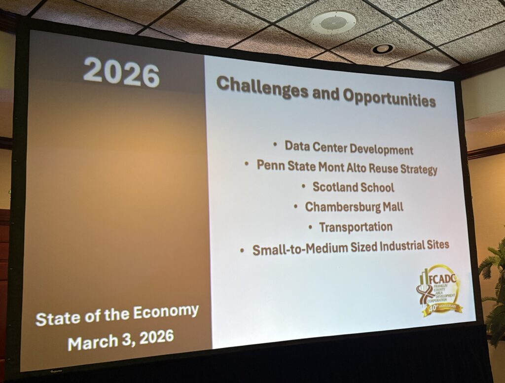 Projects that are on the horizon that were shared by Ross included a strategy to reuse the Penn State Mont Alto campus that will close in mid-year 2027 as a training and education center. No specific details have been formed as of yet, but that is the direction the conversation is going, according to Ross.