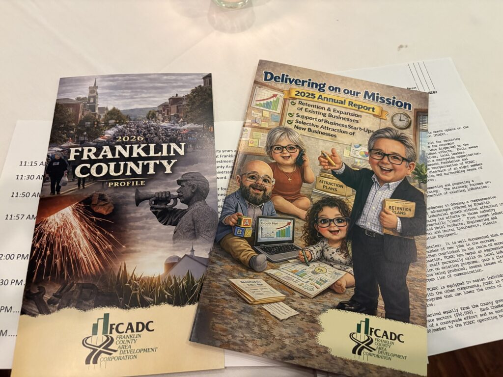Franklin County is also known for its agriculture. The county ranks 10th in the state for preserved acreage and has more than 1,400 family farms which makes up 53% of the land in the region. The FCADC supports the ag growth in the region by supporting $193.5 million of capital investments, $22.5 million in economic development resources and 900 ag jobs created and retained through 63 ag projects.