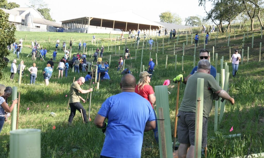 The employees planted more than 500 trees and shrubs on 3 acres of farmland, creating a