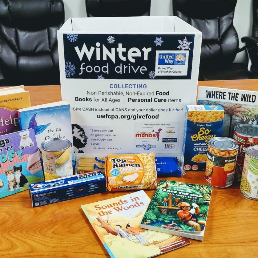 The Winter Food Drive continues through Jan. 31. You can donate online or by mailing a check to United Way of Franklin County, 182 S. Second St., Chambersburg, PA 17201.