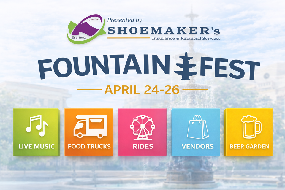 CHAMBERSBURG, Pa. – Downtown Chambersburg will come alive April 24-26 for Fountain Fest 2026 presented by Shoemaker’s Insurance. Fountain Fest is a weekend-long celebration of music, food and community spirit. The event will feature live entertainment, local food trucks, carnival rides and family-friendly activities for all ages.