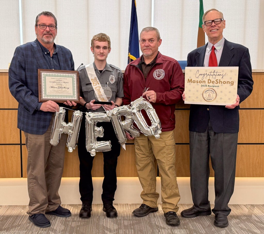 Mason DeShong was named the 2025 Community Hero award recipient. This honor is presented to an employee who has gone above and beyond the call of duty to improve or save the lives of Franklin County residents. DeShong has been with the county since July 2025 and currently serves as a correctional officer at the Franklin County Jail.