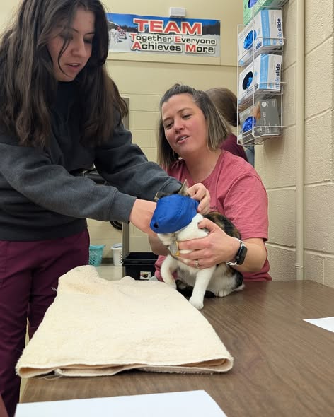 Under the direction of instructor Lisa Cook, the students practiced handling and restraint techniques, as well as safe methods for administering medication. The activity gave students the opportunity to apply classroom knowledge in a controlled, real-world setting.