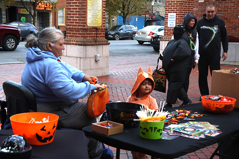 Beyond the core of downtown, participation rippled outward. Trinity Apartments buzzed with activity as tenants passed out treats from doorways, while residents at The Hearthstone Retirement Home took turns handing candy to young visitors, sharing stories of Halloweens past. Civic groups like the Owls Club, Eagles Club and VFW Post also opened their doors, contributing bags of sweets alongside other downtown businesses that lined the streets with glowing displays.