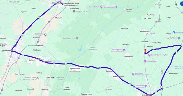 The escort will depart from Dugan Funeral Home in Shippensburg between 6:30 and 7 a.m. The route will proceed along Route 11 South into Chambersburg, continue east on Route 30 through Gettysburg, then travel north on Route 15 to the Heidlersburg exit before concluding at Biglerville High School.