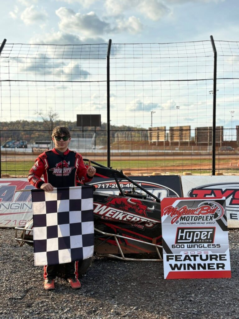 Todd Walls, of Greencastle, had a brilliant day racing in the PA Micro Midgets 500cc program. Walls blasted off for victory in his eight-lap heat race, before driving from ninth to third in the 20-lap feature. Walls was chased to the finish by Chambersburg’s Keenan Wade (15th) and Saint Thomas’ Brandon Scofield (DNF for 21st).