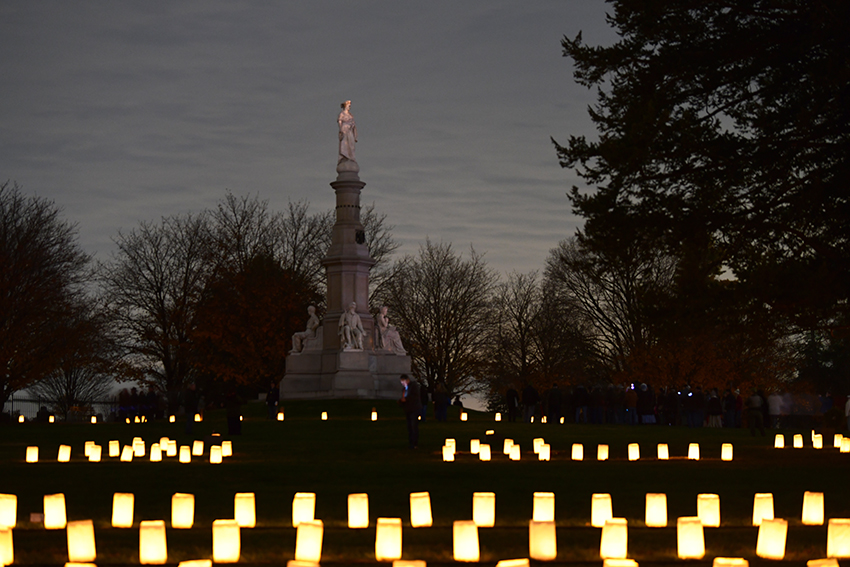 The Gettysburg Foundation hosted the 23rd Annual Remembrance Day Illumination from 5:30 to 9:30 p.m. The free public event honored the 3,512 soldiers buried at the site, with every grave marked by a candlelit luminary. Volunteers read the names of the fallen throughout the evening.