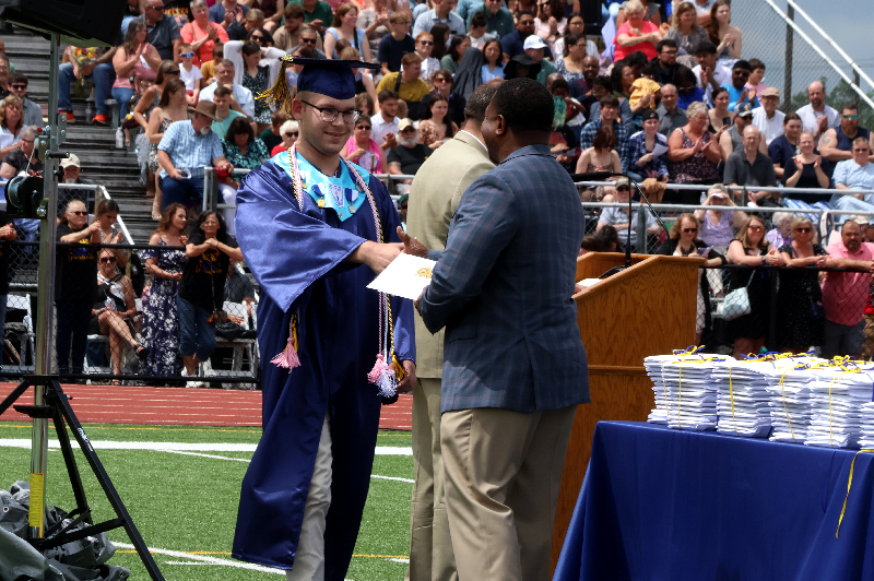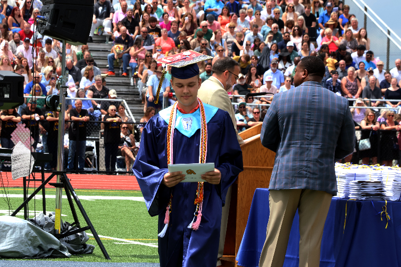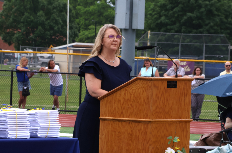 Principal Michael McManus presented the graduating class, and Dr. Edward Rife, assistant superintendent, recommended them for graduation. Diplomas were then awarded by Janon Gray, president of the Board of School Directors, alongside board members.