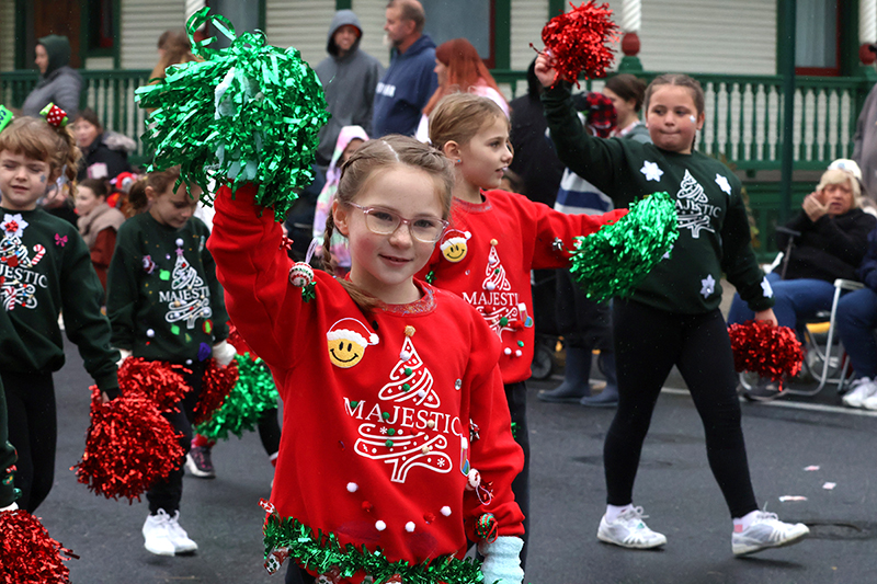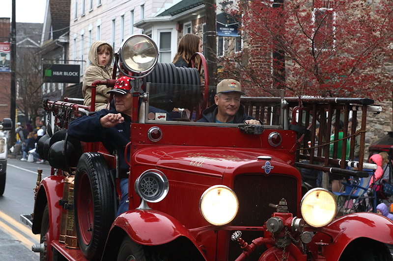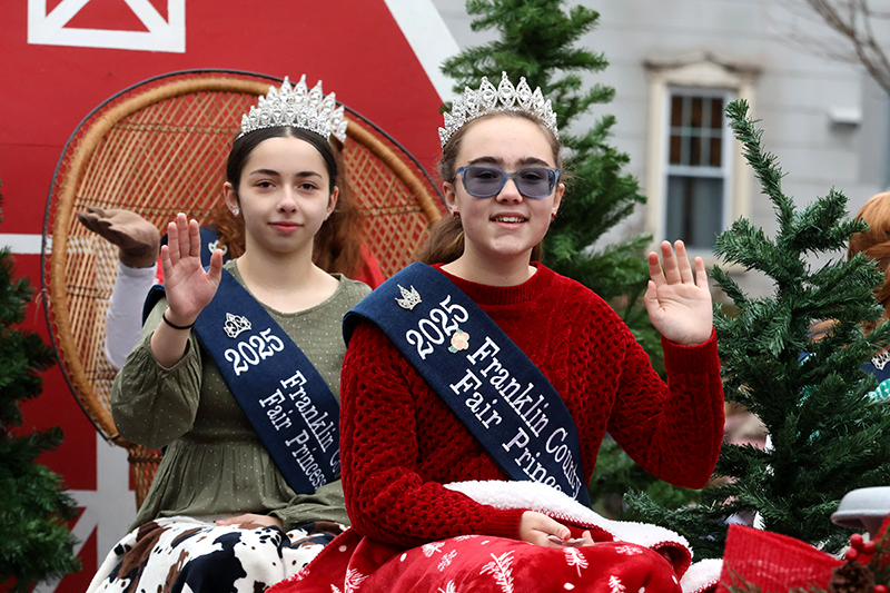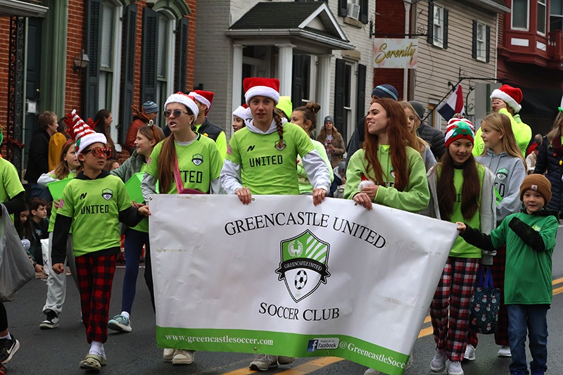 A convoy of Jeeps rumbled past, followed by the Greencastle Blue Devils youth football team and Greencastle-Antrim Baseball and Softball Association. Greystone Kennels paraded pooches in holiday bandanas, while Little Miss Shippensburg Fair Aspyn Jumper waved regally.