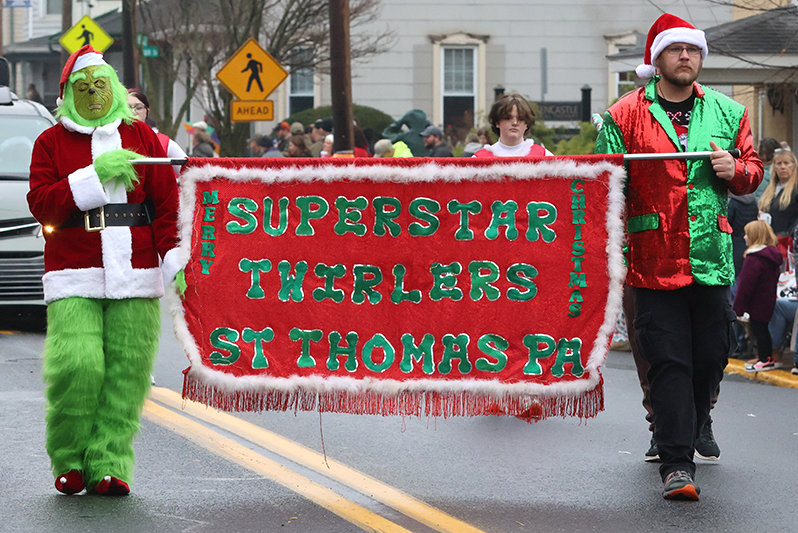 High school marching bands from Greencastle-Antrim, Waynesboro, Chambersburg, McConnellsburg and Warfordsburg Southern Fulton set a rhythmic pace, their brass and drums echoing off brick storefronts. Boy Scouts of America Troop 99 of Greencastle waved flags alongside baton-twirling Superstar Twirlers of St. Thomas.