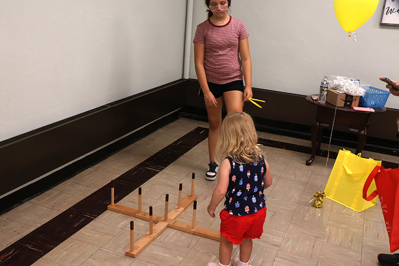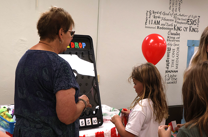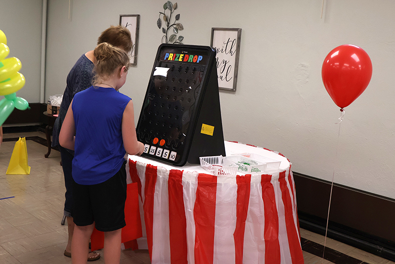 Children eagerly participated in games offering big and small prizes. Popular activities included picking a favorite duck to win a prize, spinning a wheel for rewards, tossing rings and dropping disks in the prize drop game. Other attractions featured rolling dice and tossing bean bags into buckets, keeping young attendees entertained.