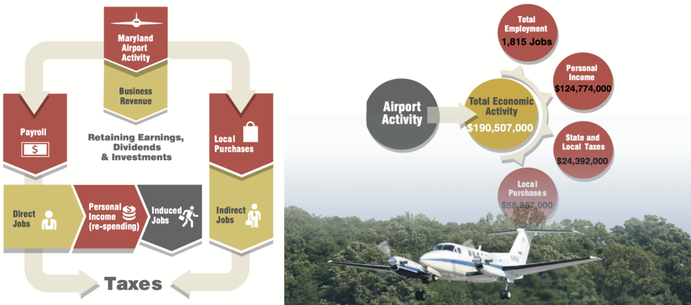 “Maryland Aviation Administration charts showing how HGR accounts for over $190M in regional economic activity.”